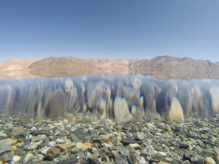Pangong Tso is also know as "lake of changing colours" as it changes it's colours in beautiful gradients of blue after every few meters of distance or with changing shades of clouds and sunlight.